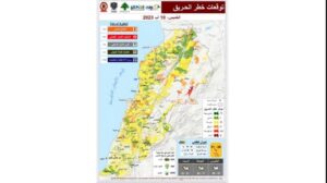 نشرت صفحة الدفاع المدني اللبناني خريطة تظهر المناطق في لبنان الأكثر عرضة لنشوب الحرائق بسبب الحر.