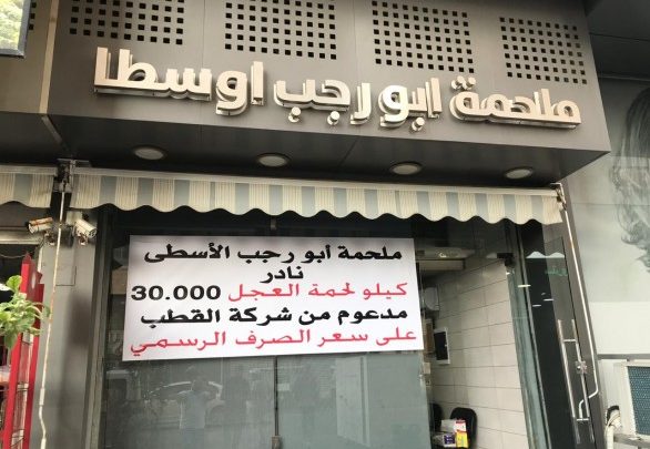 استعادت عدد من الملاحم في صيدا حركة البيع والشراء المعهودة على اثر تلقيها دعم من محال الصيرفة من فئة الف في المدينة وشراء اللحمة بحسب تسعيرة الصرف الرسمي للدولار اي 3900 ليرة حيث رفعت عدد من الملاحم لافتات كبيرة على ابواب محالها كتب عليها ” كيلو لحم العجل 30 الف ليرة مدعوم من شركة القطب على سعر الصرف الرسمي ” ..
