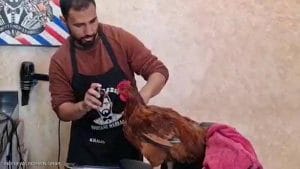 يستطرد الحلاق: “كان الأمر مثيرا للدهشة، و كنت أتساءل كيف ستكون ردة فعل الديك لحظة تشغيل ماكينة الحلاقة الكهربائية، وهل سيظل هادئا عندما أبدأ في عملية قص ريشه”.